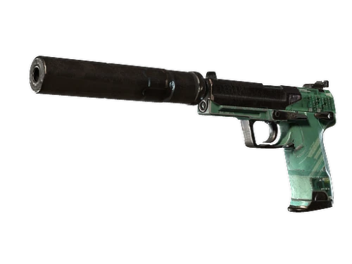 A fan favorite from Counter-Strike Source, the Silenced USP Pistol has a detachable silencer that gives shots less recoil while suppressing attention-getting noise. It has been custom painted with a minty green and silver-colored design.